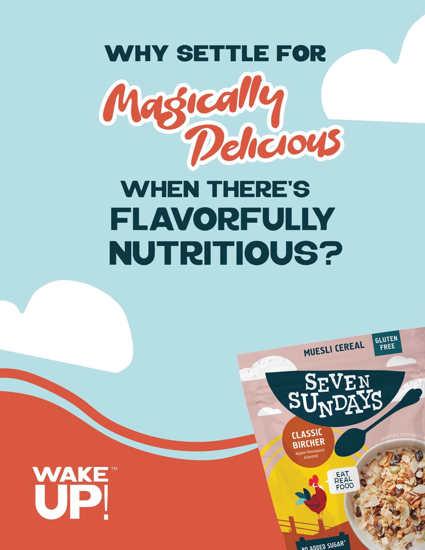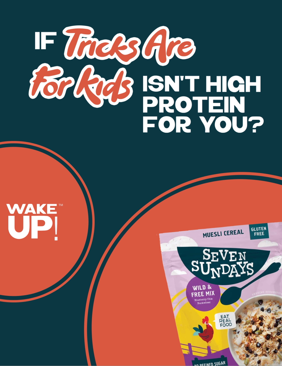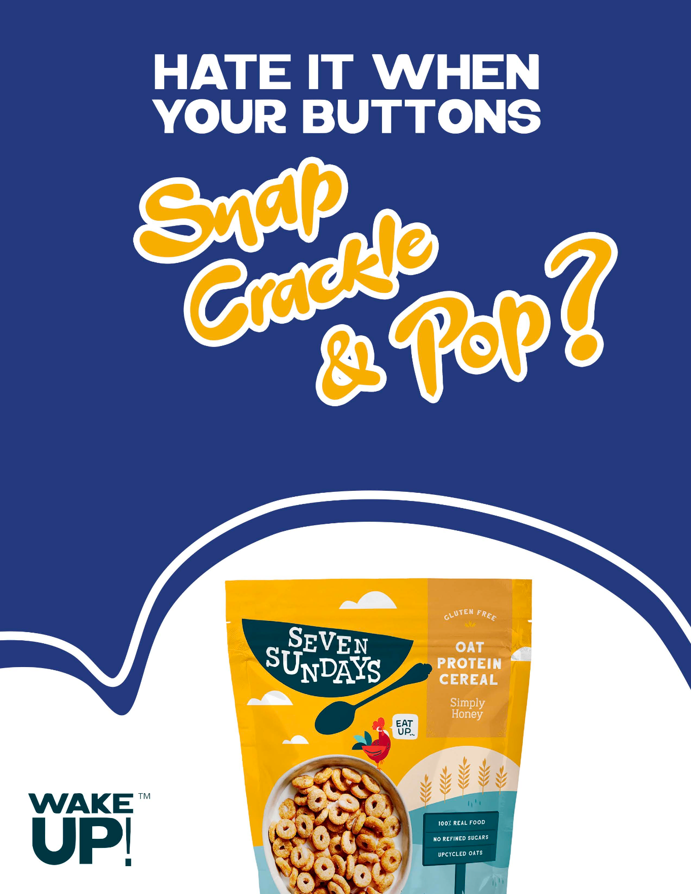 “Wake Up!” is a playful, subversive print campaign that invites adults to graduate from nostalgia-first cereals to a bowl that actually fuels their day.