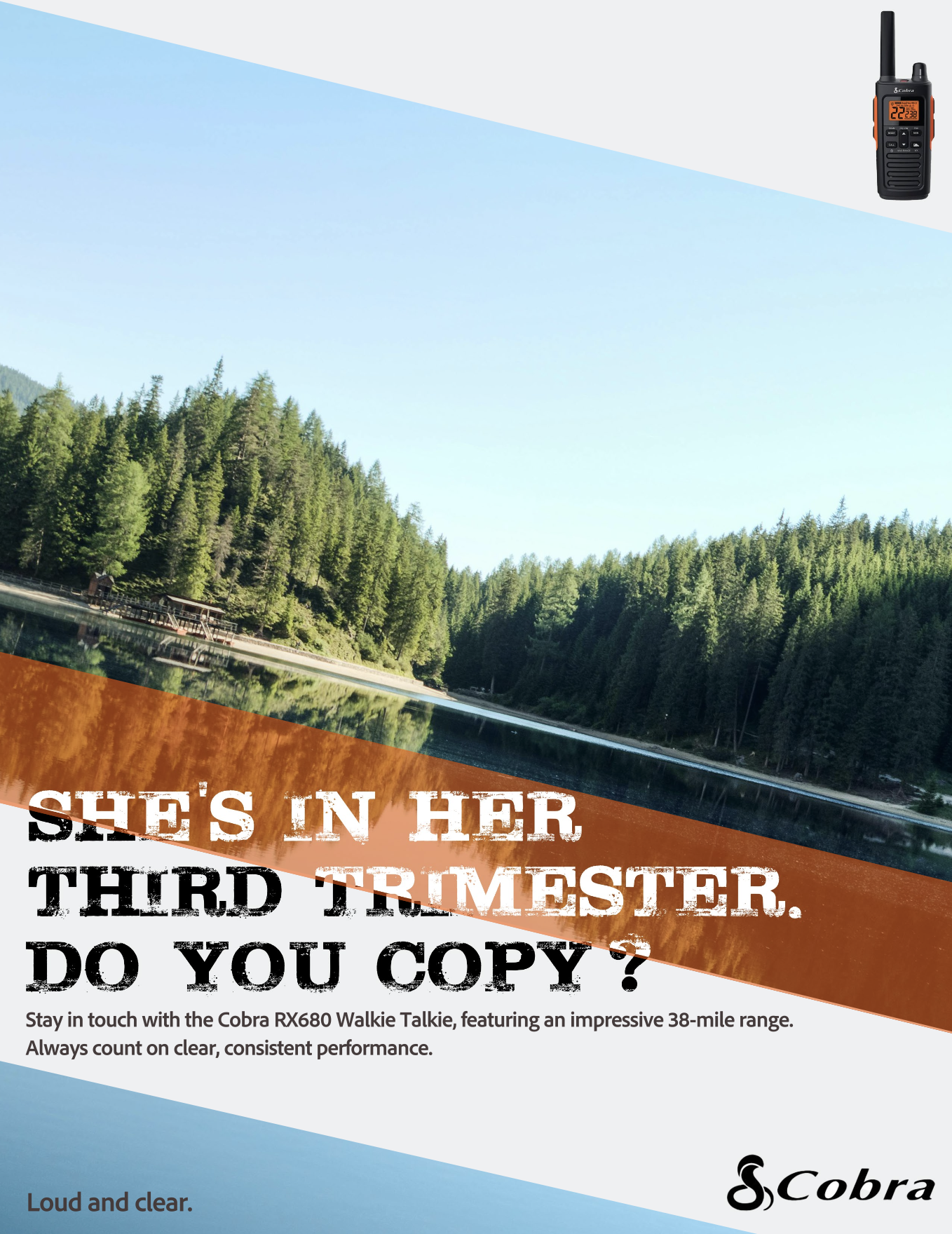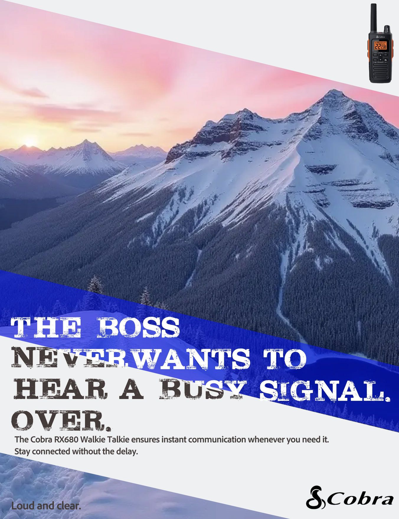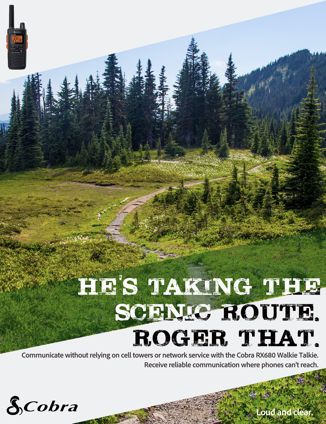 Cobra Cobra walkie talkies are the most dependable way to stay in sync when it matters most. CW & AD by me. Print